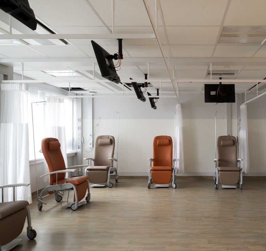 Une des préoccupations majeures à l’occasion de la rénovation était d’améliorer le confort du patient pendant les consultations, les traitements et les examens. Évidemment, tous les matériaux utilisés devaient être conformes à la réglementation sécurité incendie en vigueur.