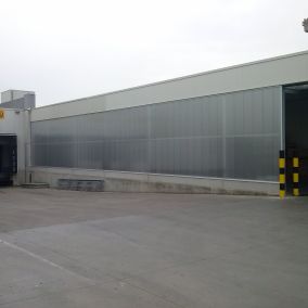 La croissance soutenue de l’entreprise nécessitait l’expansion urgente des espaces d’entreposage. Pour faciliter le chargement des camions, quelles que soient les conditions atmosphériques, l’espace de chargement a été muni d’une cloison haute de 4 mètres et large de 30 mètres, réalisée avec des plaques Arcoplus 547 et des profils en aluminium de Vink. C’est l’entreprise d’installation APP de Balen qui a été chargée du placement de la cloison.