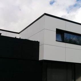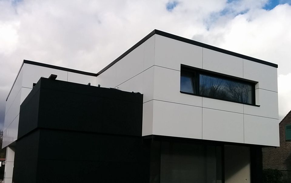 De nieuwbouwwoning van de familie Goossens werd onlangs bekleed met Steni® Colour in de kleuren zwart (SN 8900) en wit halfmat (SN 8001). De bewoners installeerden zelf de platen met het Innotec lijmsysteem. Ze kozen voor  Steni® omwille van de architectonische kwaliteiten, de duurzaamheid en de gebruiks- en onderhoudsvriendelijkheid van het materiaal.