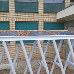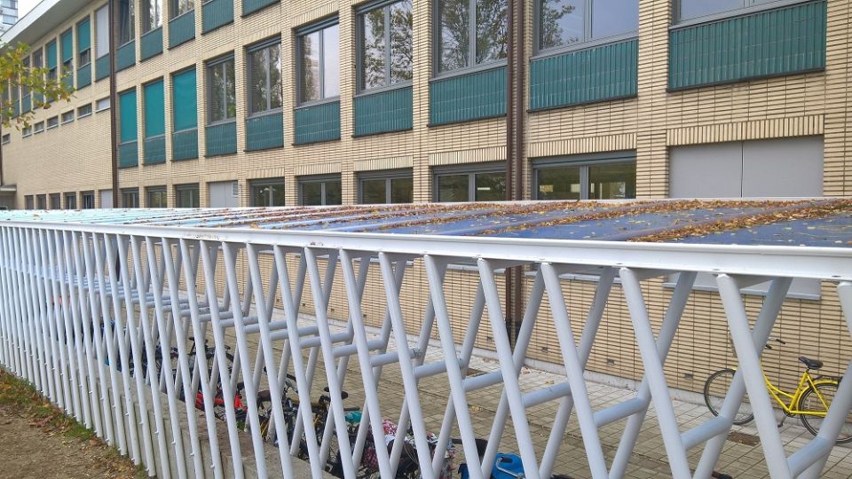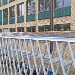 Architect Nathan Ooms van architectenbureau Plusoffice ontwierp een nieuwe, functionele fietsenstalling met luifel. Als beglazingsmateriaal koos hij voor ArcoPlus® 9207 polycarbonaatplaten.
