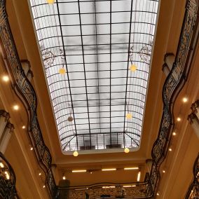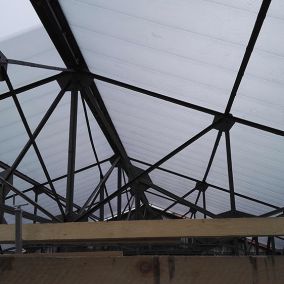 Er werd een  constructie gebouwd boven de historische glaselementen met transparante ArcoPlus® 549 platen. De constructie  beschermt de art deco 'glas in-lood' koepels tegen hagelinslag en glasbreuk. Tegelijkertijd zorgen de ArcoPlus 549 platen voor een goede dakinsolatie.